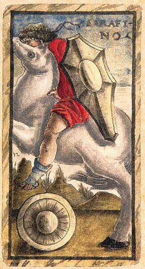 Unlike the earlier Visconti-Sforza tarot decks, the cards of the Sola Busca are numbered.